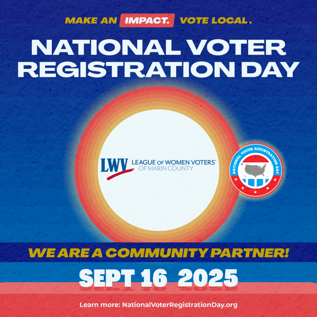 On September 19th from 3-5 PM, League members will be at the Marin City Library to help register voters.